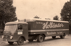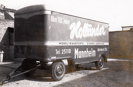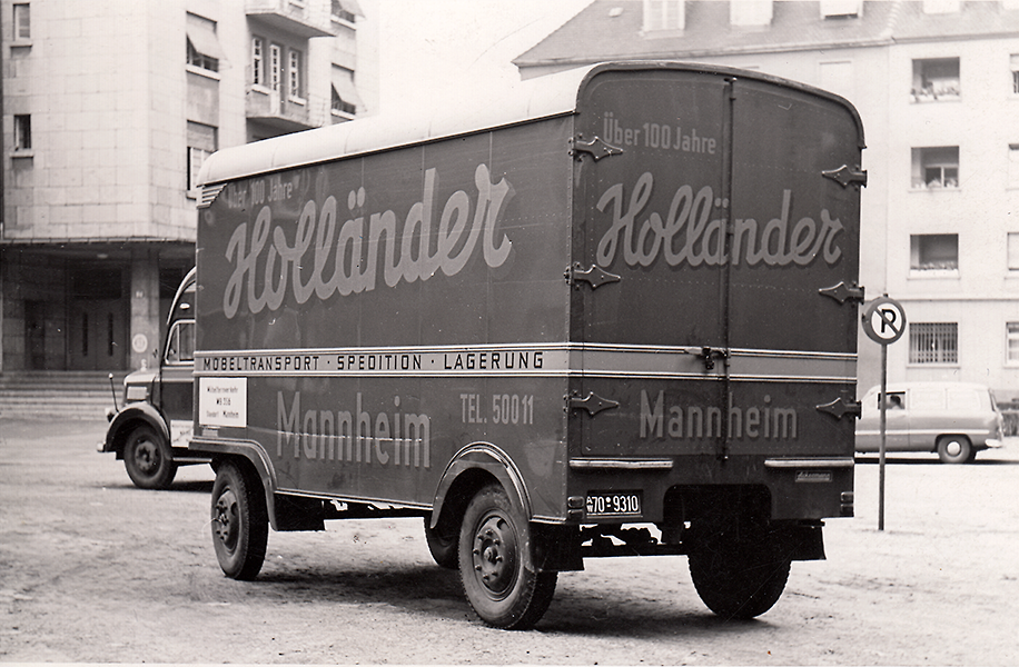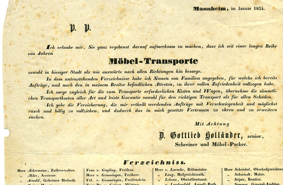 1838 Schreinermeister Daniel Gottlieb Holländer beginnt mit dem Verpacken und Transport von Hausrat innerhalb von Mannheim und anderen Plätzen.